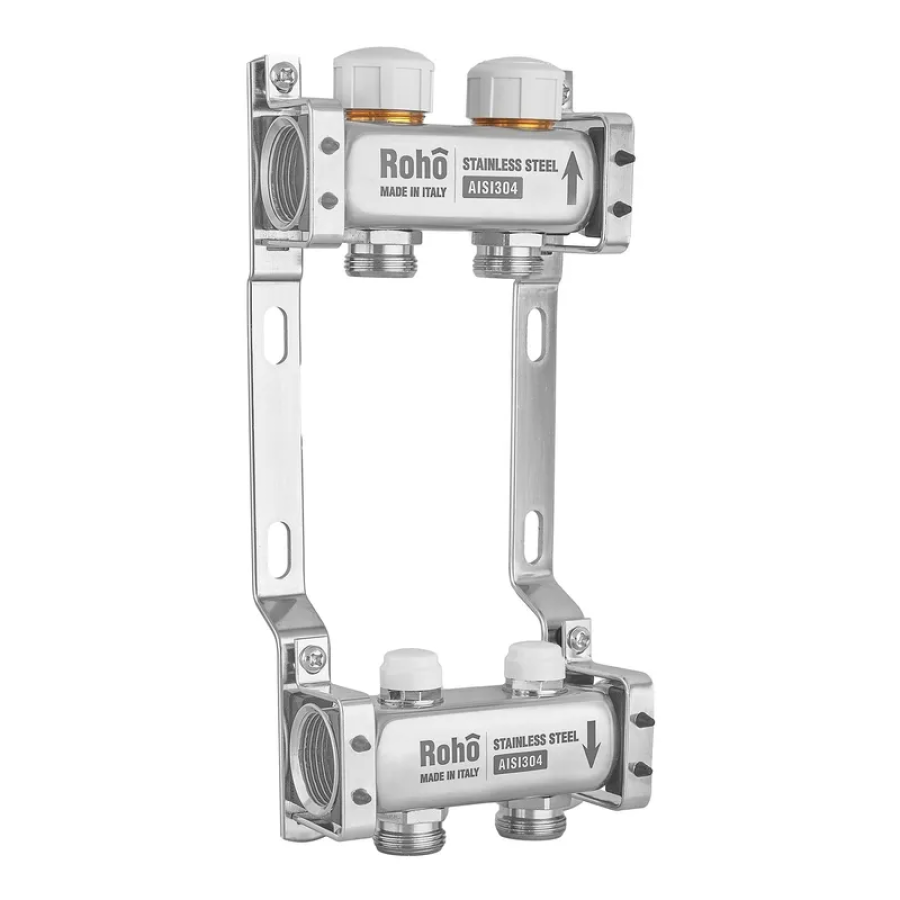 Колектор розподільчий Roho R805-02M призначений для створення багатоконтурних систем опалення. Він допоможе забезпечити повноцінний розподіл тепла по приміщенню, підвищуючи контроль та зручність експлуатації. Такий колектор підходить для підлогового або радіаторного опалення, де важливо мати індивідуальне регулювання по контурах.