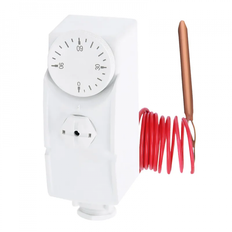 - Широкий діапазон регулювання: від 0 до +90°C, що дозволяє використовувати термостат у різних опалювальних системах – від побутових до промислових;