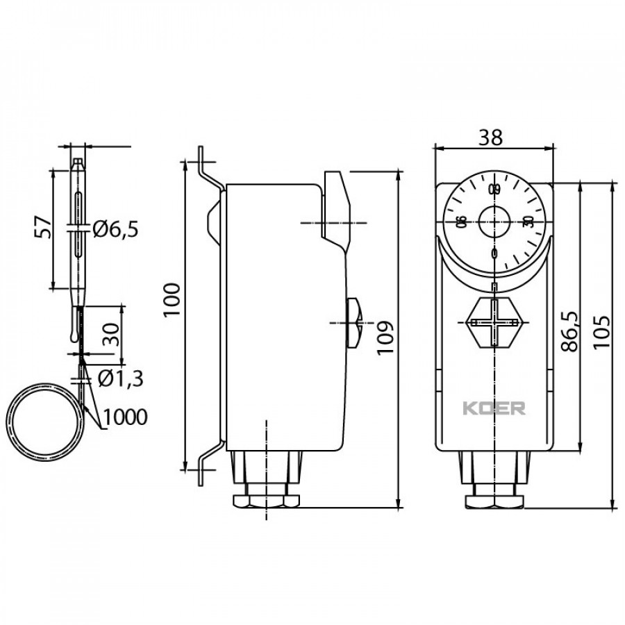 Теги: Термостат механічний накладний з виносною гільзою Koer KR.1352 (0…+90*C) (KP2777), , KP2777, O&L, Система отопления