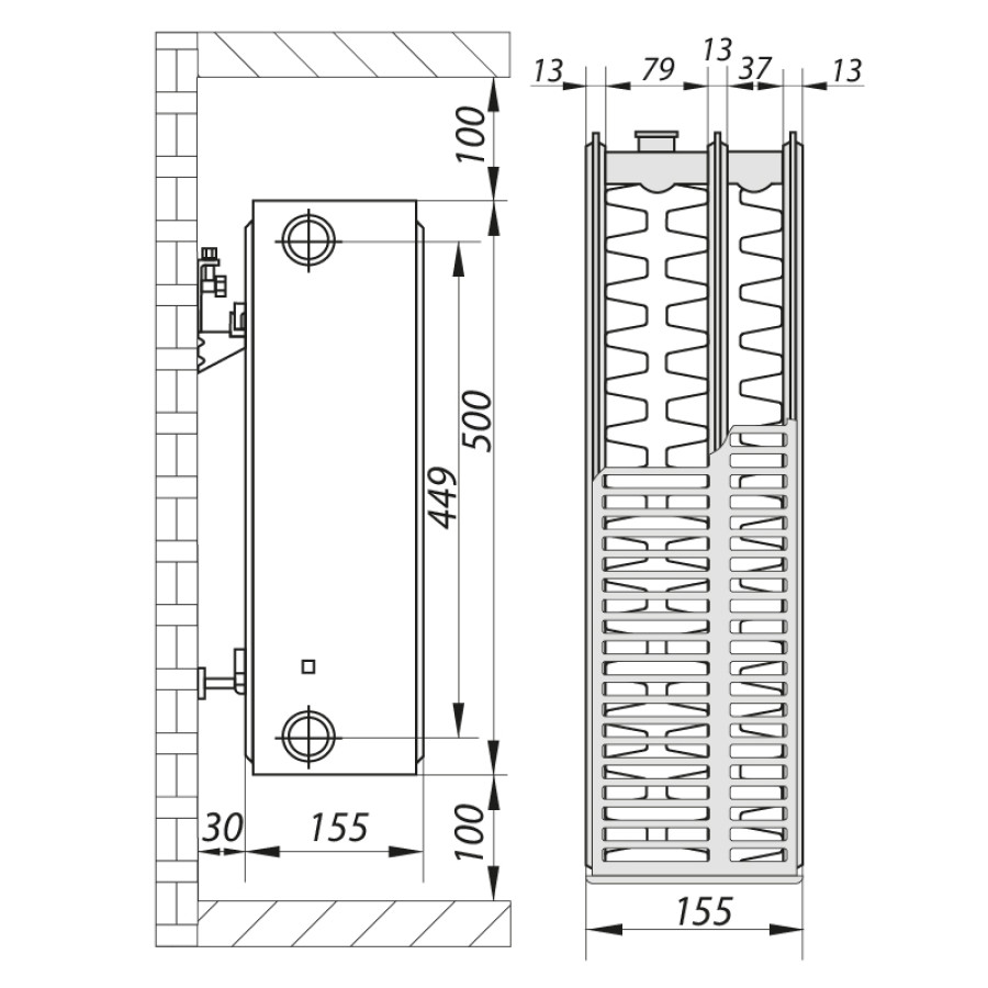 - Зручність встановлення – Однотипне бокове підключення значно полегшує монтаж та підключення до системи опалення, зменшуючи час робіт.