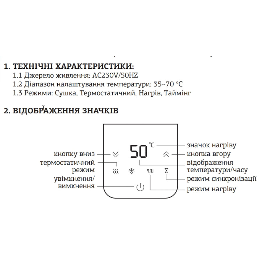 - Потужність 300 Вт – забезпечує швидкий та рівномірний нагрів сушарки.
