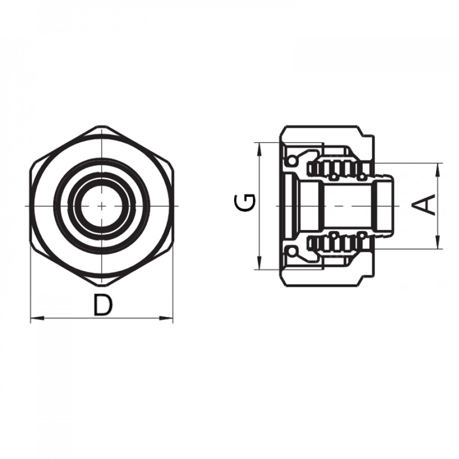 - Тип з'єднання: контргайка з ущільнювальним конусом;