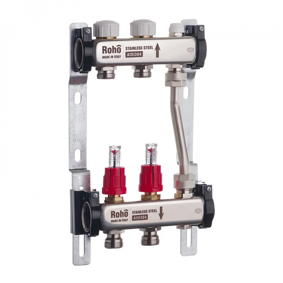Колектор з витратомірами та термостатичними клапанами з байпасом Roho R814-02 - 1"х 2 вих. (RO0045) – надійне рішення для теплої підлоги