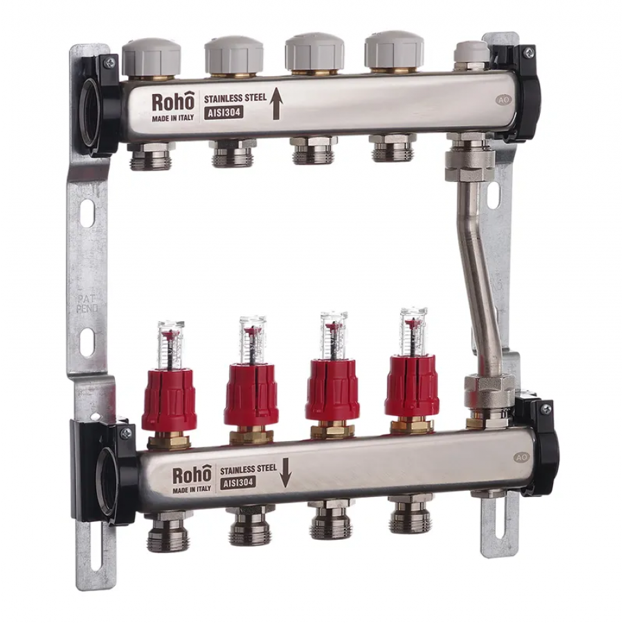 Колектор з витратомірами та термостатичними клапанами з байпасом Roho R814-04 – ідеальне рішення для теплої підлоги