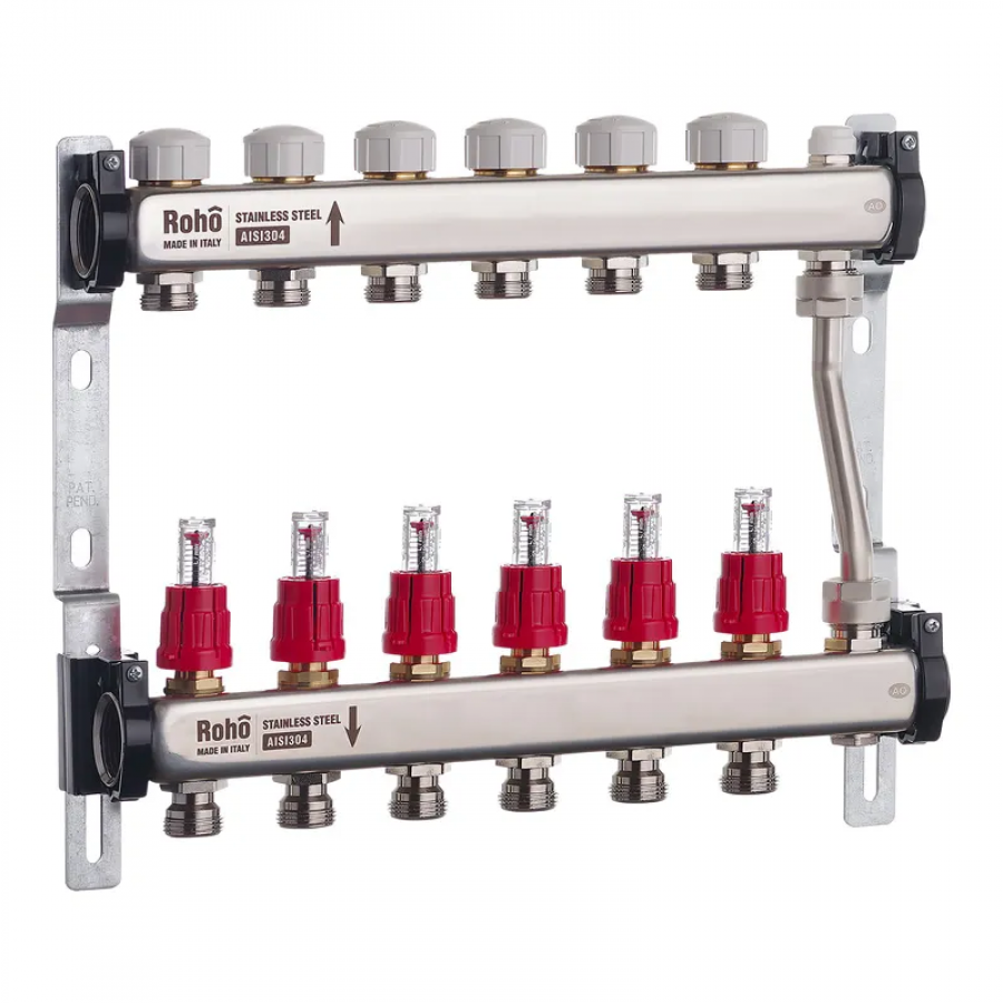 Колектор з витратомірами та термостатичними клапанами з байпасом Roho R814-06 - ідеальне рішення для теплої підлоги