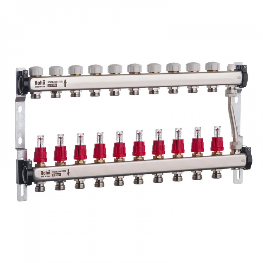Колектор з витратомірами та термостатичними клапанами з байпасом Roho R814-10 - ідеальне рішення для теплої підлоги