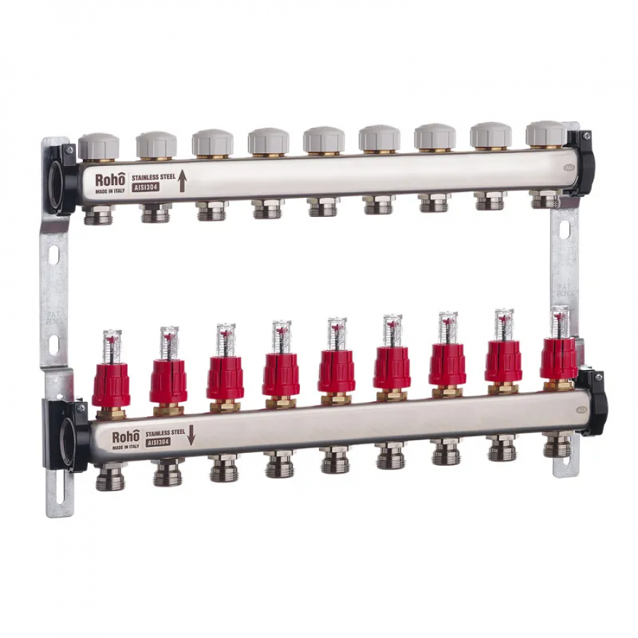 Колектор з витратоміром та термостатичними клапанами Roho R804-09 - надійне рішення для теплої підлоги