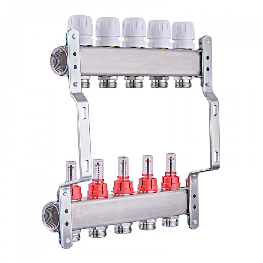 - Витратоміри – дозволяють точно налаштувати витрату кожного контуру, забезпечуючи рівномірний розподіл тепла по всій площі нагріву.