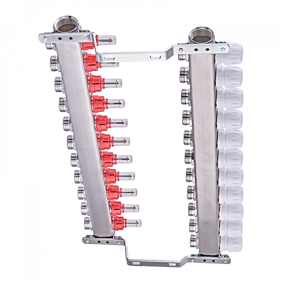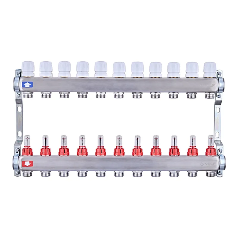 Колекторний блок з витратомірами Nolf NF.2100-11S 1"x11 (корпус нержавіюча сталь) (NF3025): максимальна ефективність для системи теплої підлоги