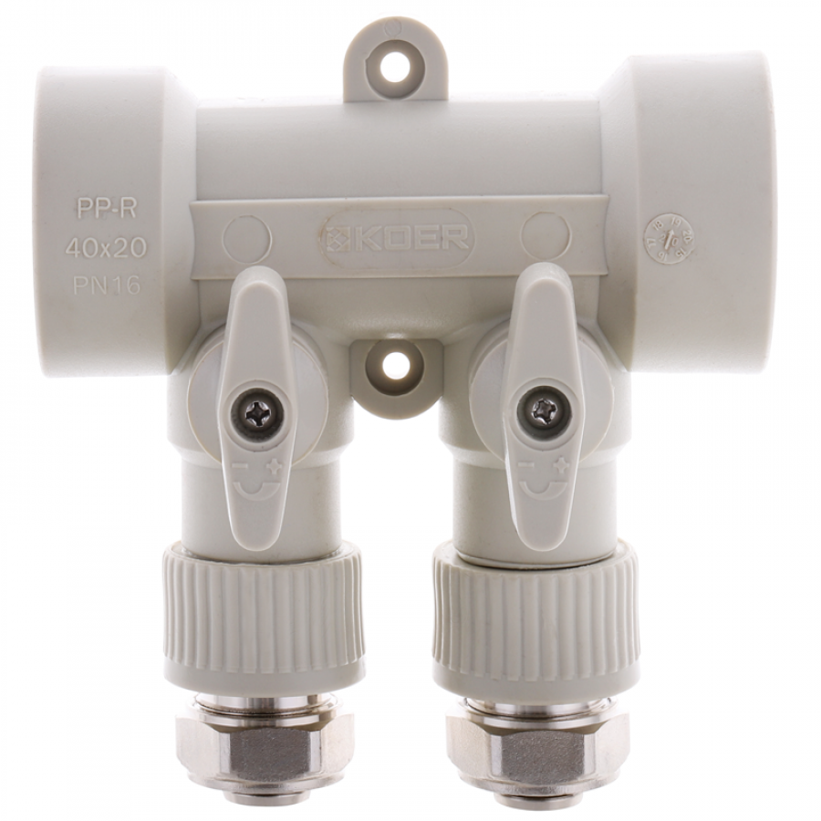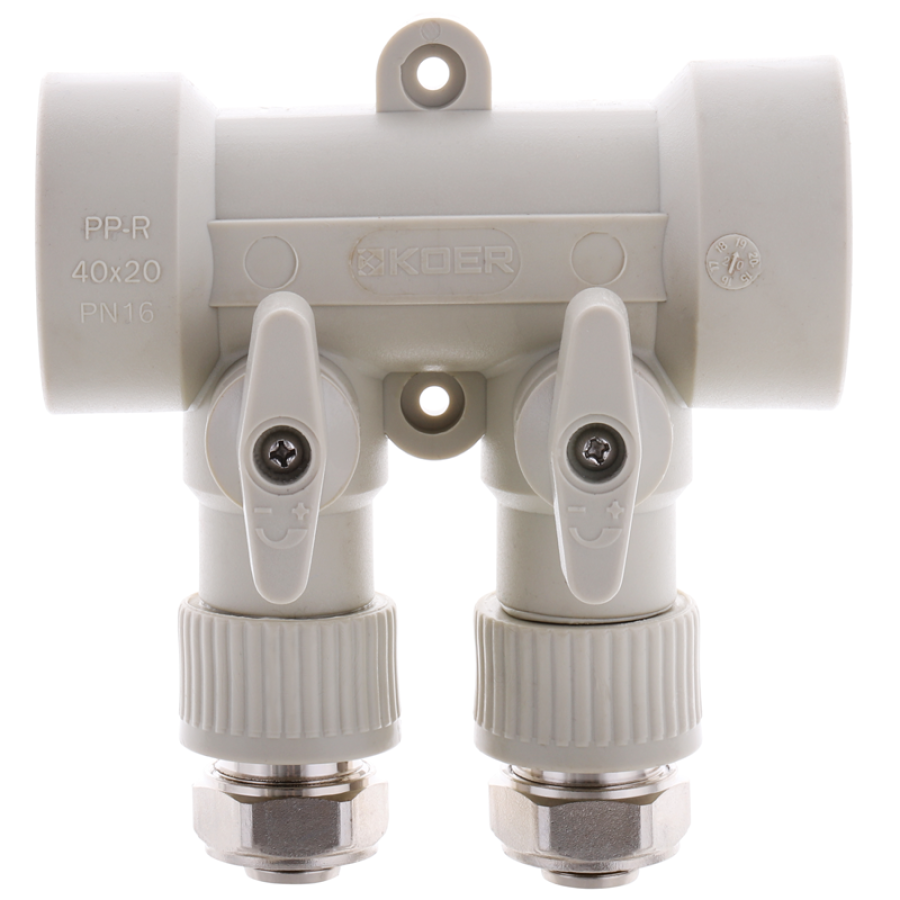 Колектор розподільний 2-way з фітингом Koer K0190.PRO - 40x20 PPR (KP2555): Надійне рішення для водопостачання та опалення