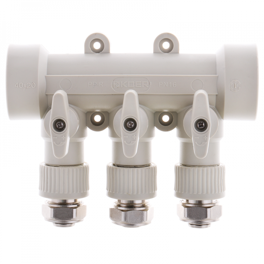 Колектор розподільний 3-way з фітингом (40x20) PPR Koer K0191.PRO (KP2556) – Надійне рішення для сучасних трубопроводів