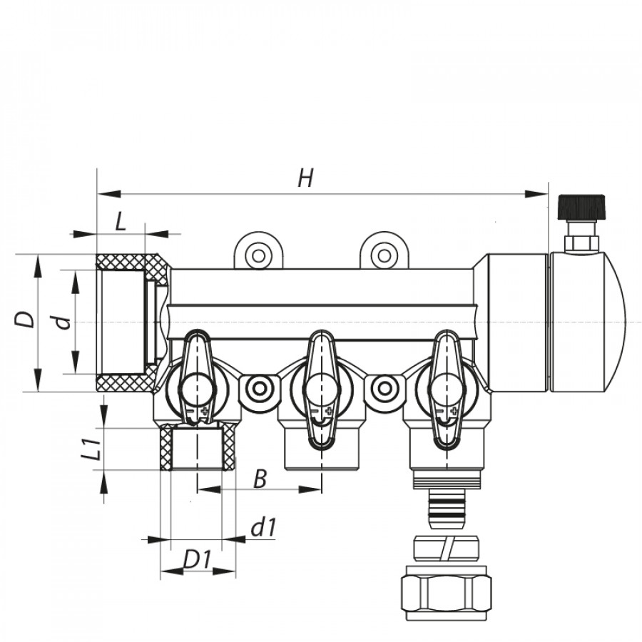 - Тип колектора: 3-way (три виходи), що дозволяє ефективно розподіляти потік рідини;