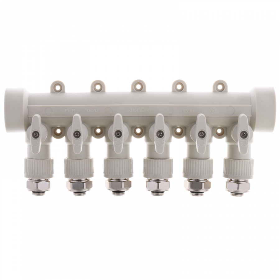 Колектор розподільний 6-way з фітингом (40x20) PPR KOER K0194.PRO (KP2559) – надійне рішення для систем водопостачання