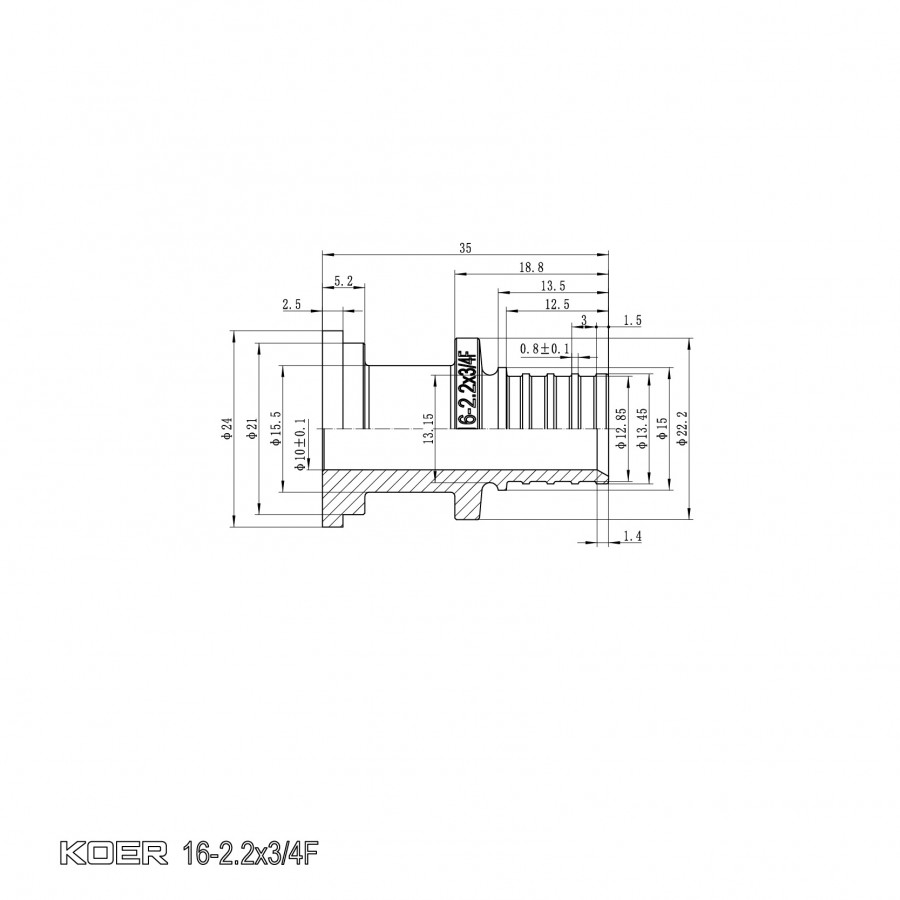 Перехідник з накидною гайкою під плоске ущільнення Koer KA.A08F-16S - 16(2.2mm) x 3/4"F (KR4866)