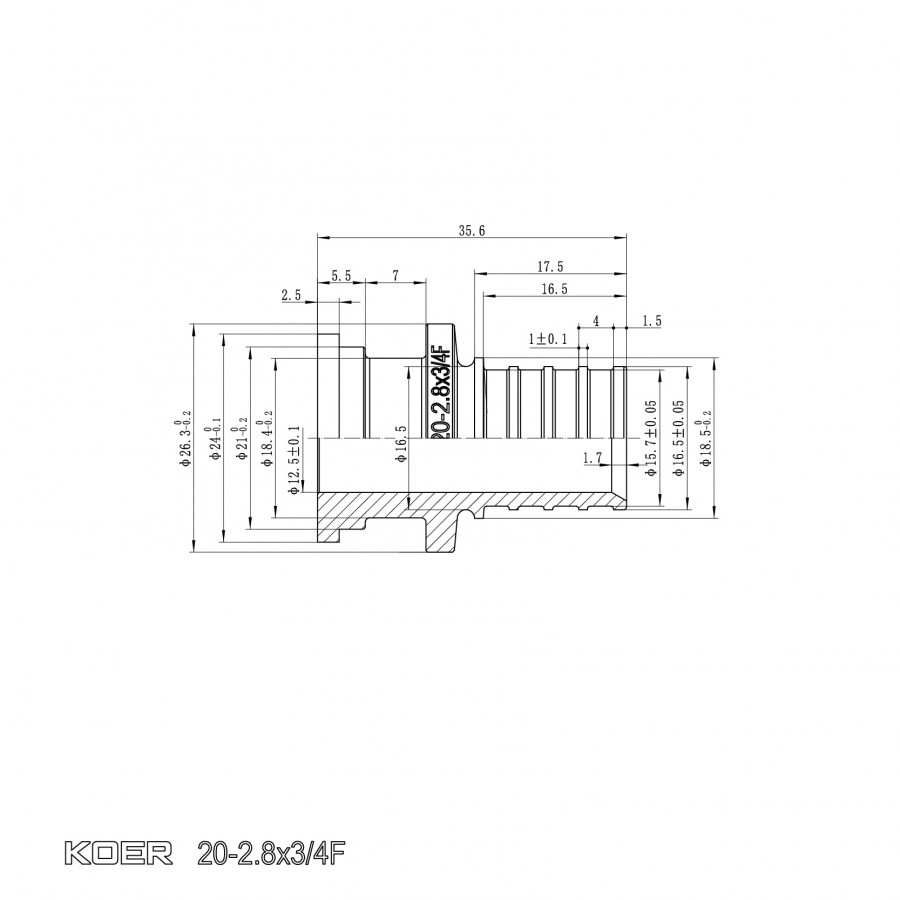 Перехідник з накидною гайкою під плоске ущільнення Koer KA.A08F-20S - 20(2.8mm) x 3/4"F (KR4867)