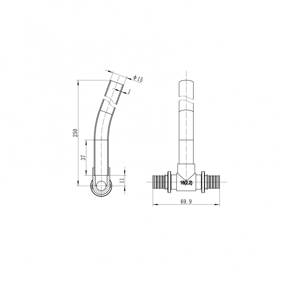 Трубка Т-подібна для приєднання радіатора Koer KA.D16-16-250 (KR4905) – надійне рішення для вашої системи опалення
