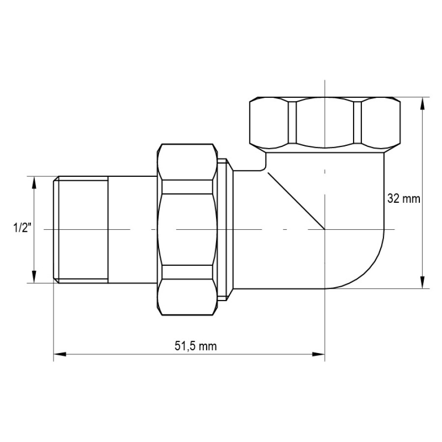 Технічні параметри згін американки 1/2" кутовий Koer KR.342 (KR0019)