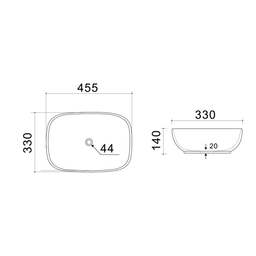 - Габарити: 455 мм у довжину, 330 мм у ширину, 135 мм у висоту – оптимальні для комфортного миття рук та обличчя;