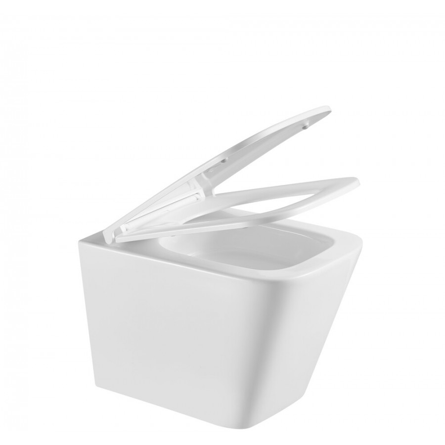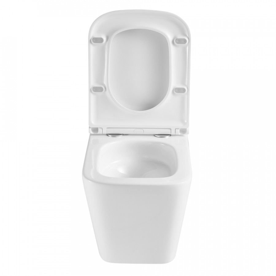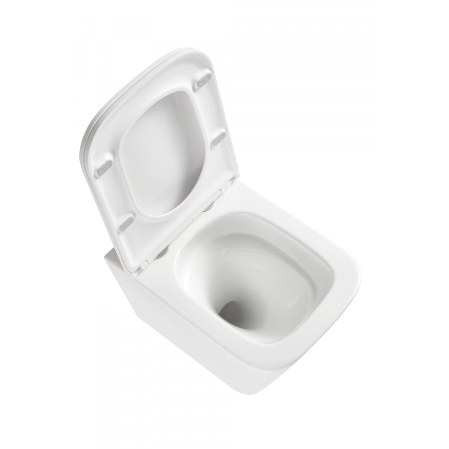 - Сучасний та елегантний дизайн з квадратною формою унітазу та глянцевою поверхнею, що легко очищується