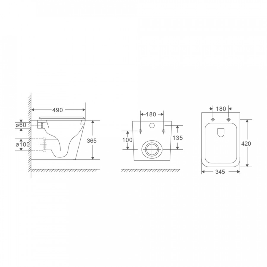 - Розміри унітазу (ВхШхГ): 360 x 340 x 490 мм
