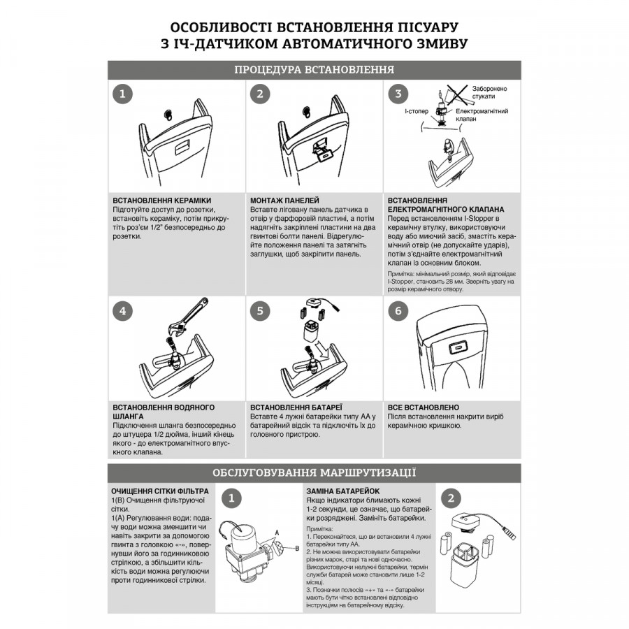 - Покращена гігієна. Завдяки безконтактному ІЧ-датчику, користувач не торкається поверхні пісуару, що мінімізує ризик поширення бактерій і вірусів.