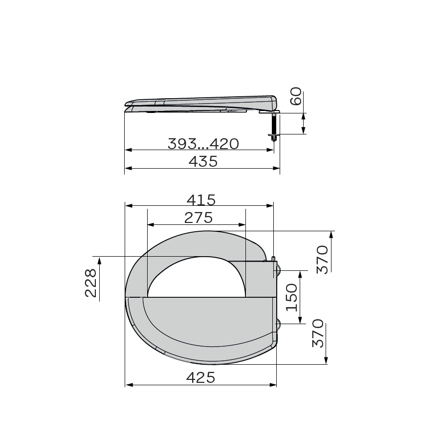 - Розміри: підходить для унітазів з розміром сидіння 36-40 см в ширину та 42-45 см в довжину