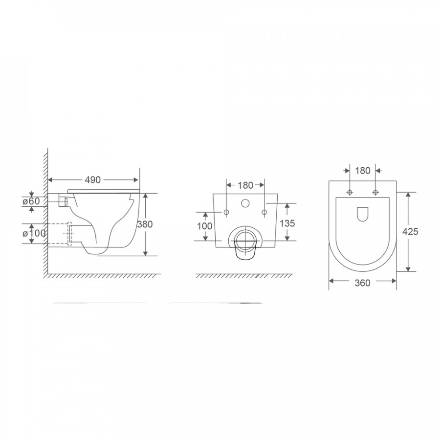 Розміри унітазу (490х360х380 мм) ідеально підходять для стандартних санвузлів, не займаючи зайвого простору, але при цьому забезпечуючи зручність користування.