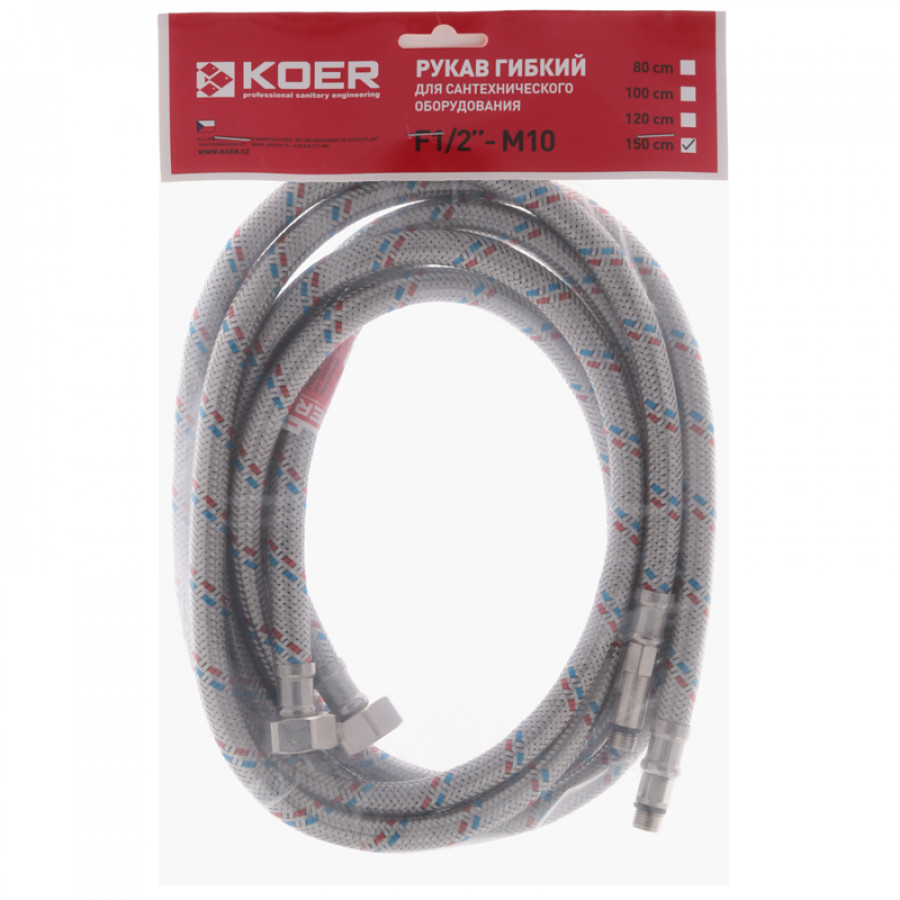 Теги: Гнучкі шланги для змішувача гайка 1/2'' - Штуцер M10 (150 см) 2 шт Koer (KR0279), , KR0279, O&L, Запірно-регулююча арматура