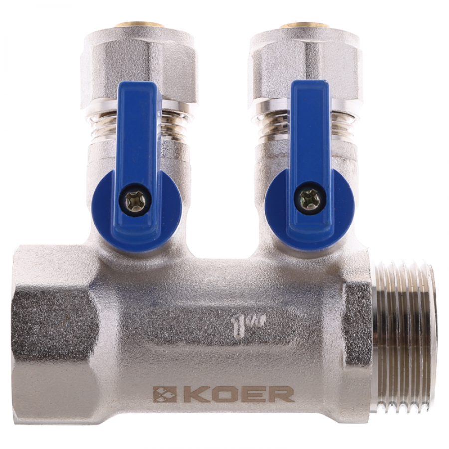 Теги: Колектор з кульовими кранами і фитингом Koer KR.1126-2 1"x2 ways (KR2838), , KR2838, O&L, Запірно-регулююча арматура