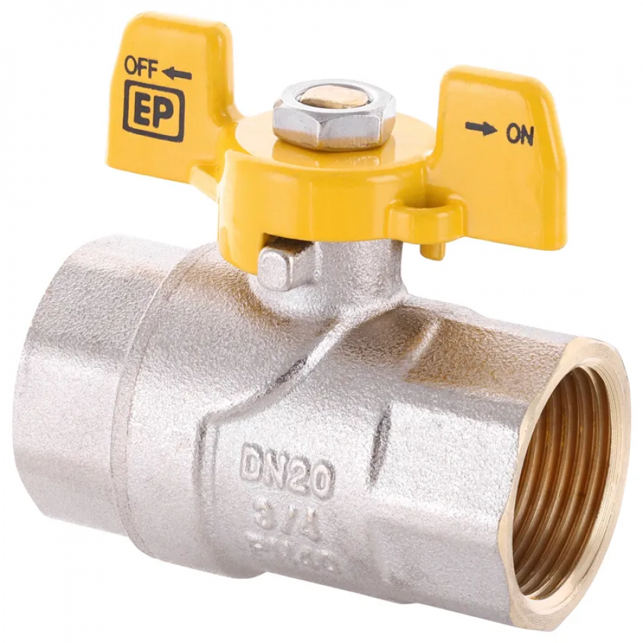 Кран кульовий Europroduct EP.121 - 3/4" FF ГГМ YELLOW, ручка "метелик" жовта (EP2931)