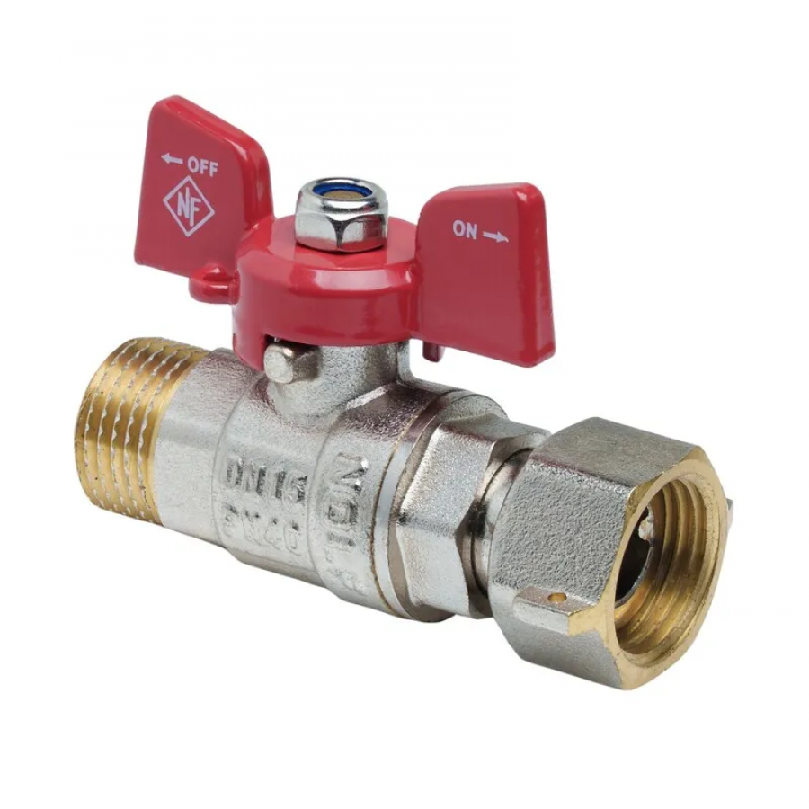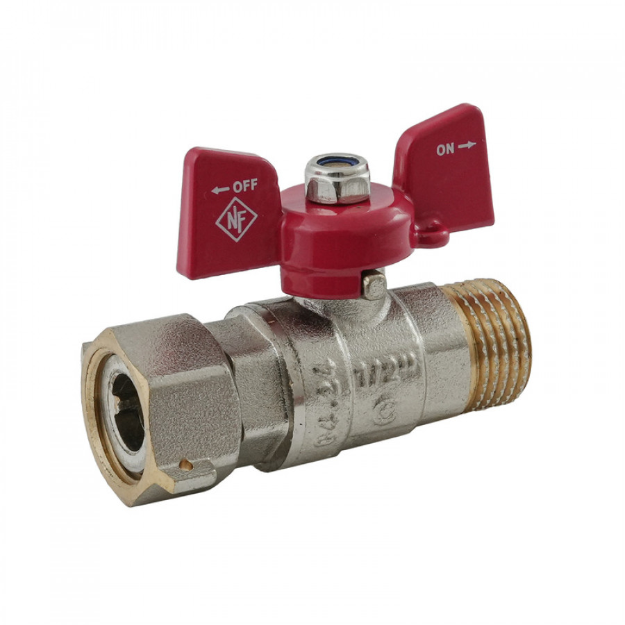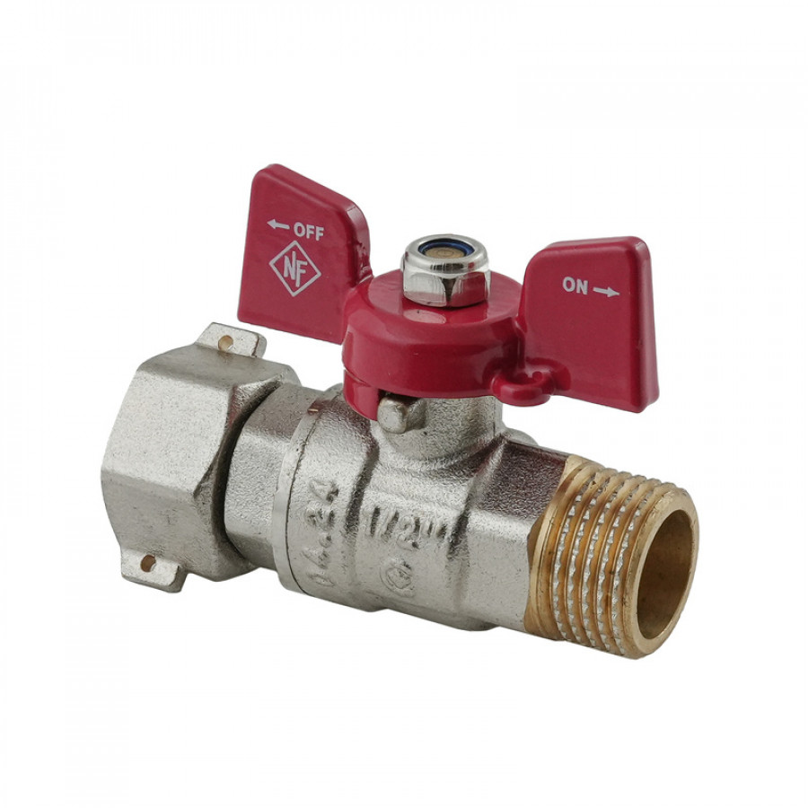 Кран кульовий Nolf classic NFC.821-06-1/2" FM ГШМ з накидною гайкою, ручка "метелик" червона (NF315