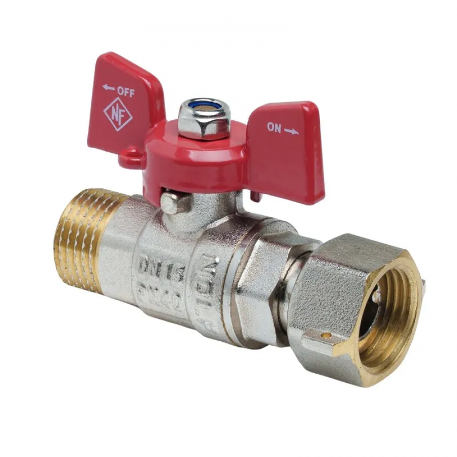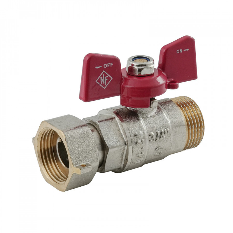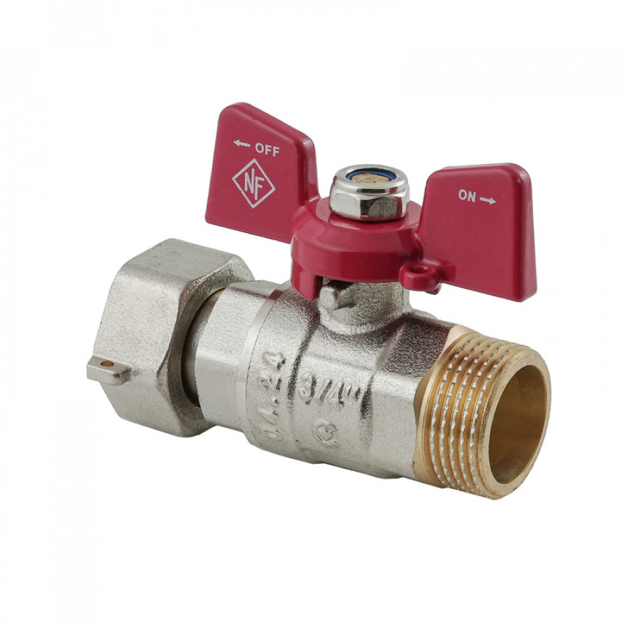 Кран кульовий Nolf classic NFC.821-08-3/4" FM ГШМ з накидною гайкою, ручка "метелик" червона (NF315
