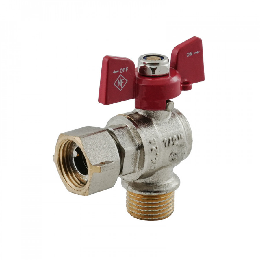 Кран кульовий Nolf classic NFC.841-06-1/2"FM ГШМ з накидною гайкою кутовий, ручка "метелик" червона