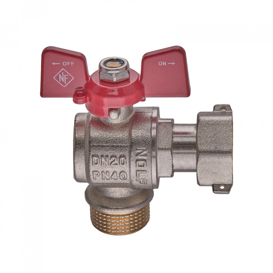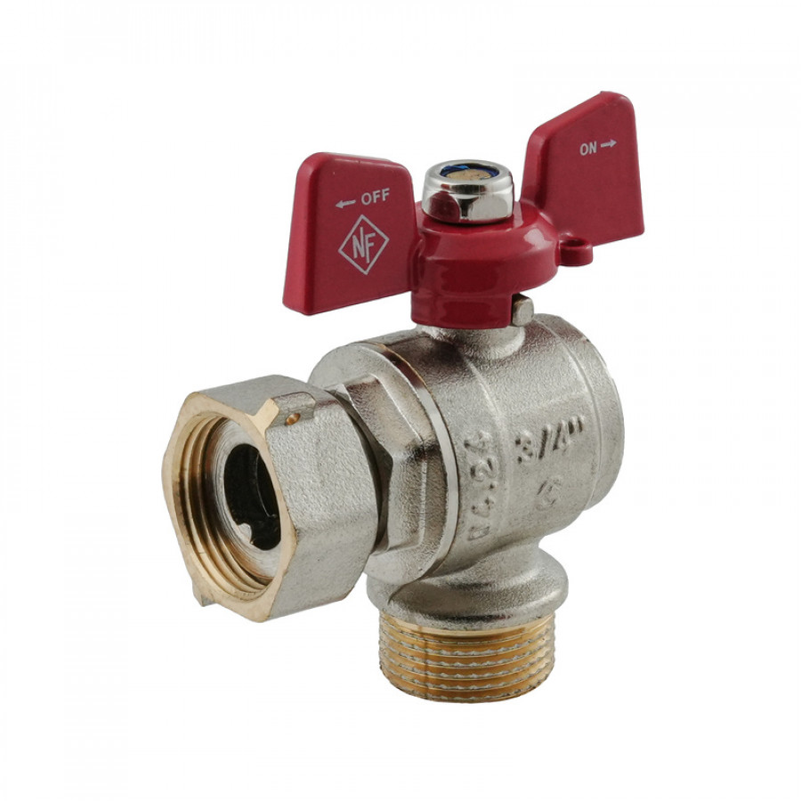 Кран кульовий Nolf classic NFC.841-08-3/4"FM ГШМ з накидною гайкою кутовий, ручка "метелик" червона