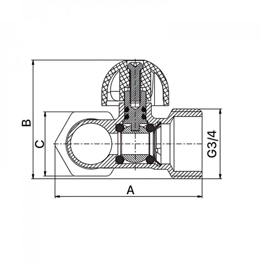 - Напрямок потоку: Прохідний, що дозволяє розподіляти потік води на два виходи;