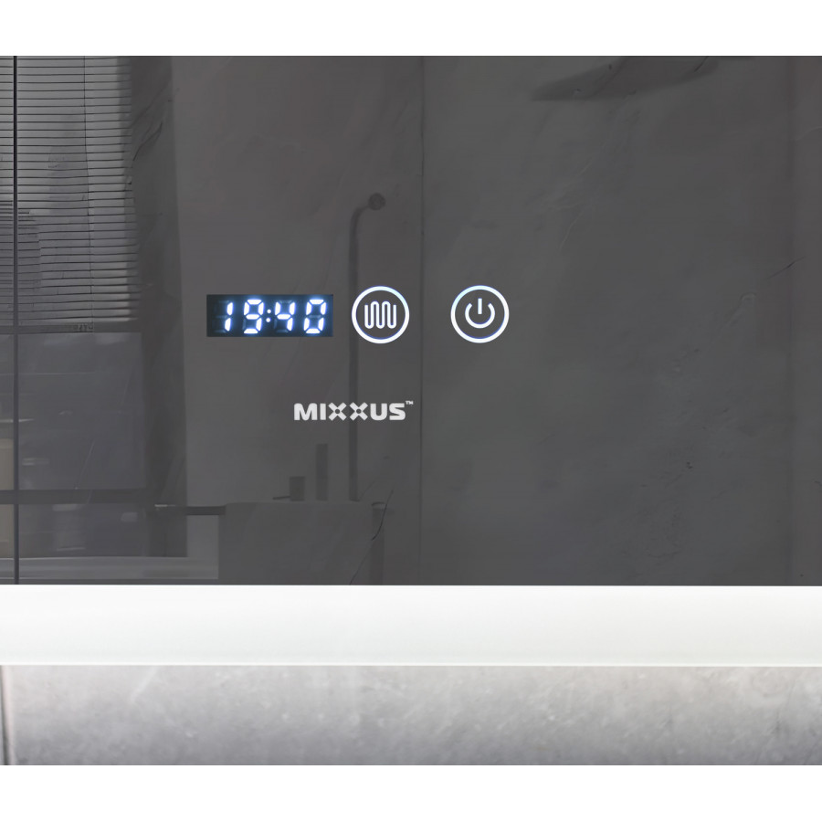 Дзеркало Mixxus FLAT MR04-80x60 з LED Touch, Anti-fog, димером, регулюванням яскравості, годинником