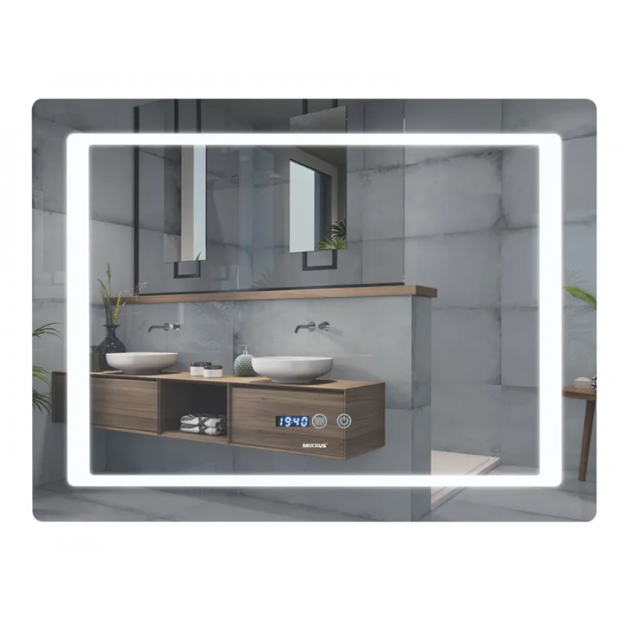 Дзеркало Mixxus Style MR03-90x70 (годинник, LED-підсвічування, антизапотівання) (MI6007)