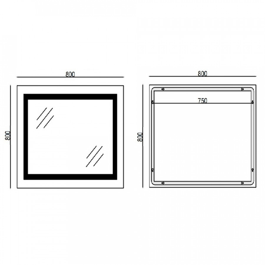 - Розмір дзеркала: 80x80 см;
