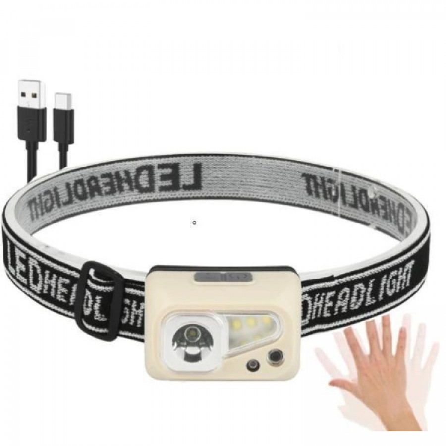 Налобний ліхтар акумуляторний SH-S4, XPE+3SMD, вбудований акумулятор, кабель Type-C, 6 режимів, білий+червоний, датчик руху, ударостійкий (20020)