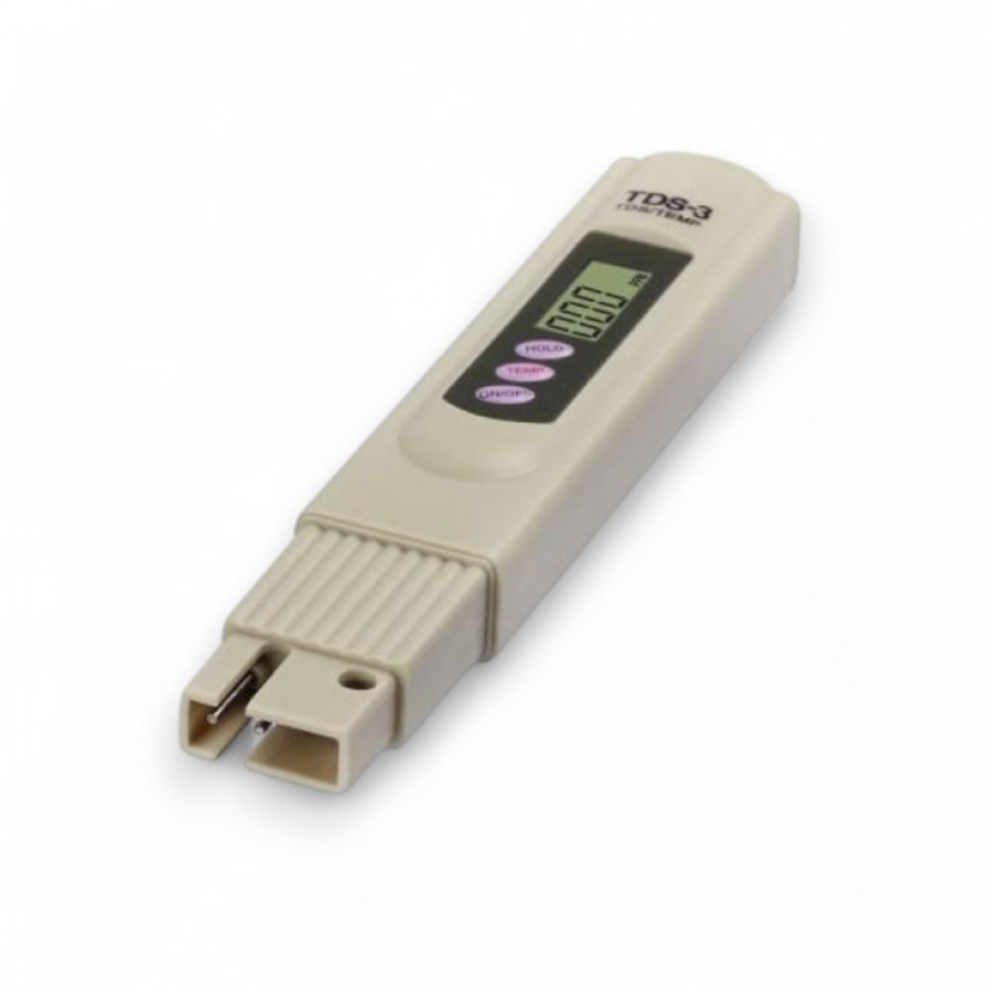 Вимірювач TDS-3 — це компактний і надійний прилад для оцінки якості води. Він дозволяє вимірювати рівень розчинених солей (TDS) та має вбудований термометр для визначення температури води. Пристрій підходить для використання вдома, в офісі, акваріумах, басейнах чи для перевірки води у системах фільтрації.